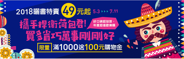 博客來5.3~7.11【2018曬書特賣】萬種圖書雜誌MOOK 49元起,滿1000再送100元購物金!